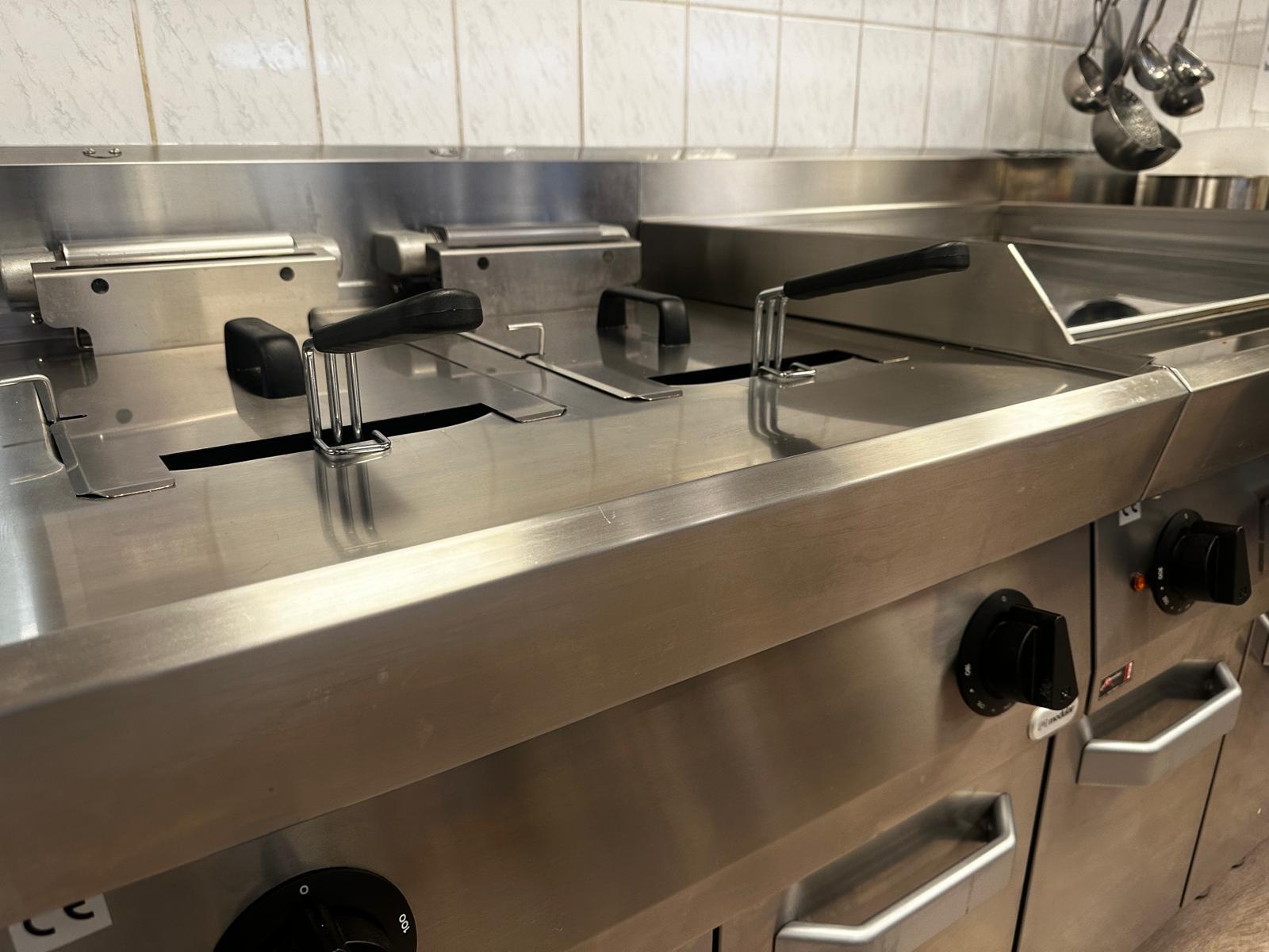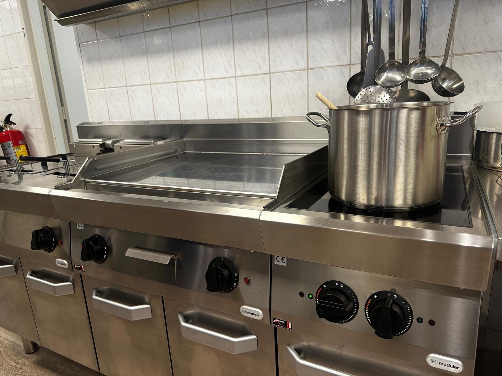 De nieuwe inductiekookplaat biedt snelle, energiezuinige verwarming, terwijl de bakplaat en friteuse veelzijdige kookmogelijkheden toevoegen. Dankzij deze vernieuwing kan het keukenteam in de bedrijfskantine nu nog efficiënter werken en gerechten van hoge kwaliteit bereiden.