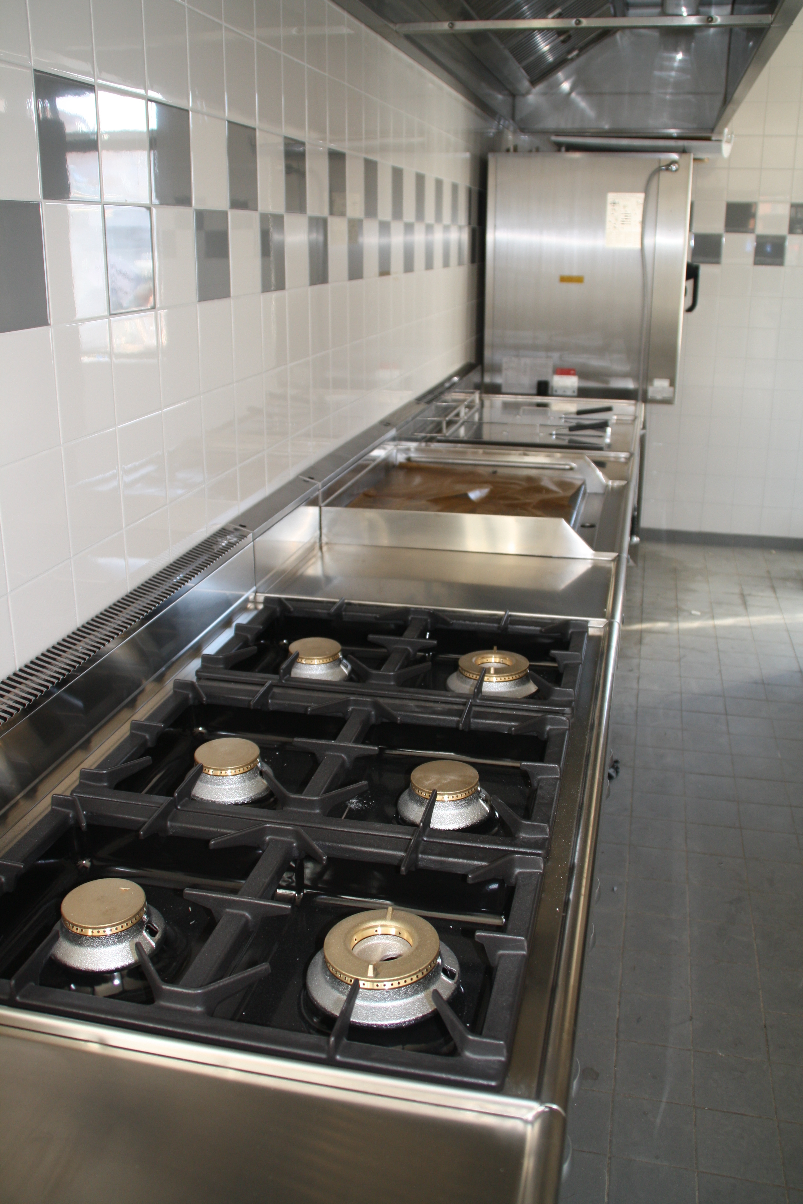 De keuken is voorzien van een uitgfte, modular kooklijn en aparte spoelkeuken