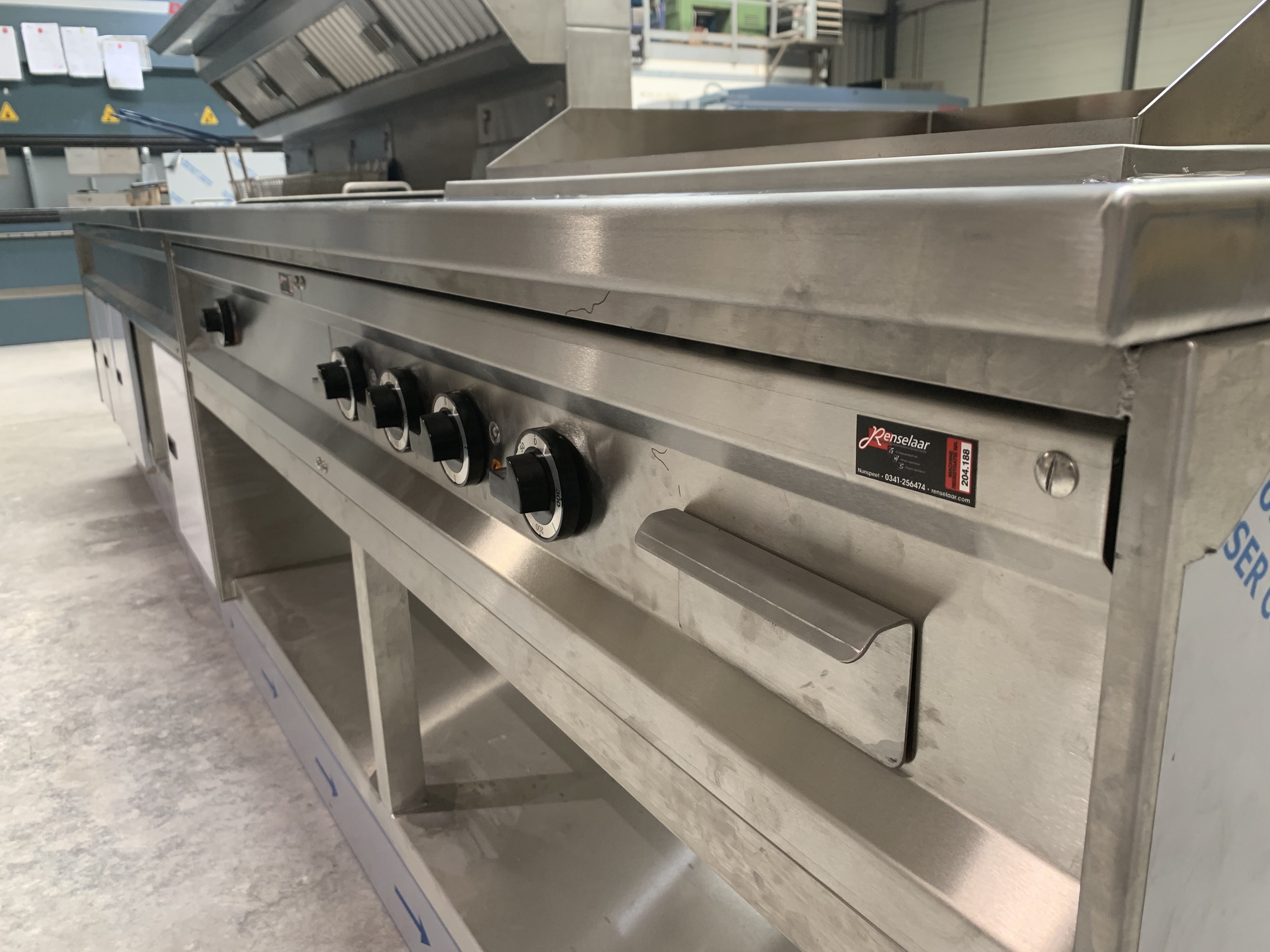 De nieuwe bakwand hebben wij compleet om maat geproduceerd en is naast friteuses ook voorzien van een bainmarie en bakplaat en volledig voorzien van geintegreerde afzuiging.